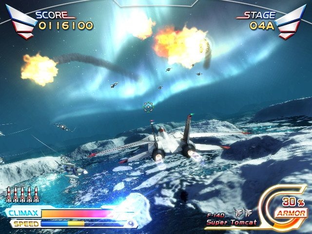 Now, I haven’t played the arcade version of this. Yes, it was a full sit down arcade cabinet in 2006. But from what I’ve read about this, it’s basically the same old After Burner just with a new coat of paint. Fly through the air, dodge things and blow things up.
